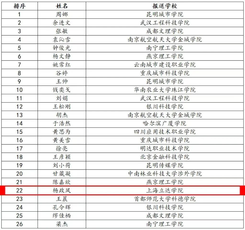 最终评选结果于10月31日正式揭晓,上海立达学院在本次评选中表现优异,喜获多项荣誉:共荣获新锐公益个人2名、新锐公益团队1支、新锐公益项目1项、公益典范项目1项、优秀公益导师1名。凭借出色的组织能力与扎实的公益实践,立达师生在各评选类别中均有亮眼表现,充分展现出立达师生在公益领域的全面素养,进一步提升了学校的社会影响力与公众美誉度。